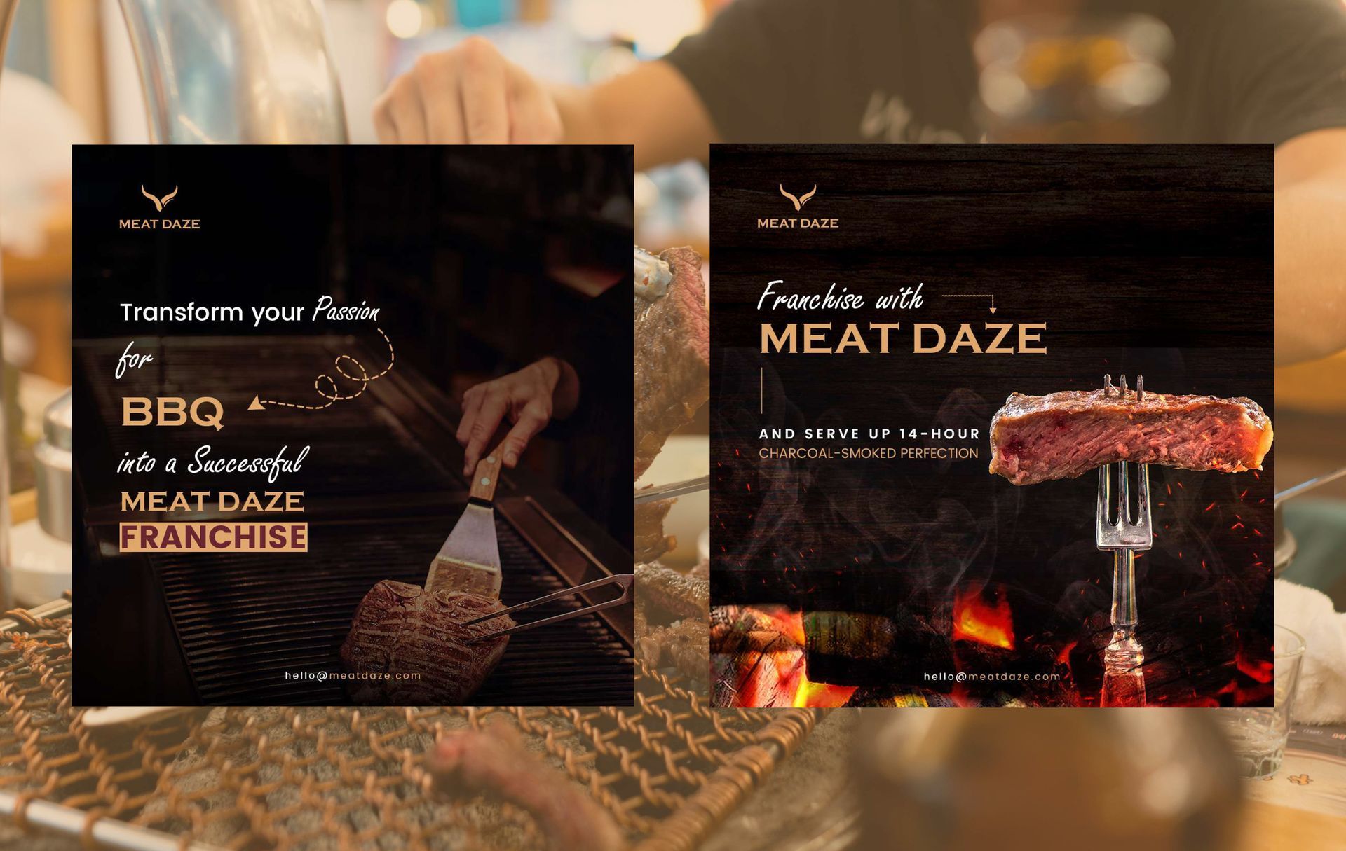 Meat Daze Express – A fast-casual model optimized for high-traffic locations. Compact, efficient, and designed for scale in malls, airports, and business hubs.